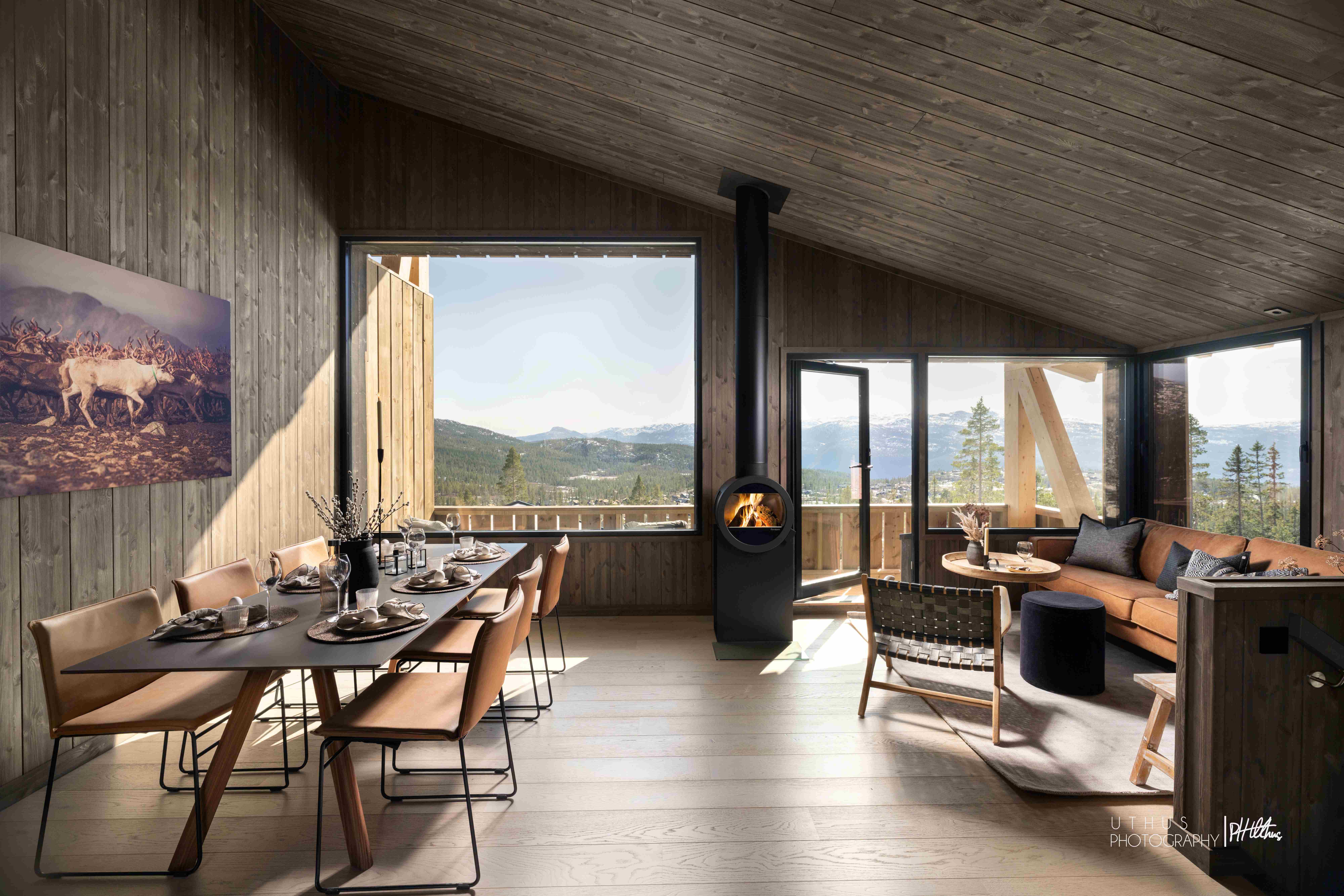 8 til 10 personer, 4 soverom + sovesofa og to bad. Fin utsikt, jacuzzi, ski inn/ski out, Wi-Fi og elbillader. Moderne hytte øverst på Turufjell